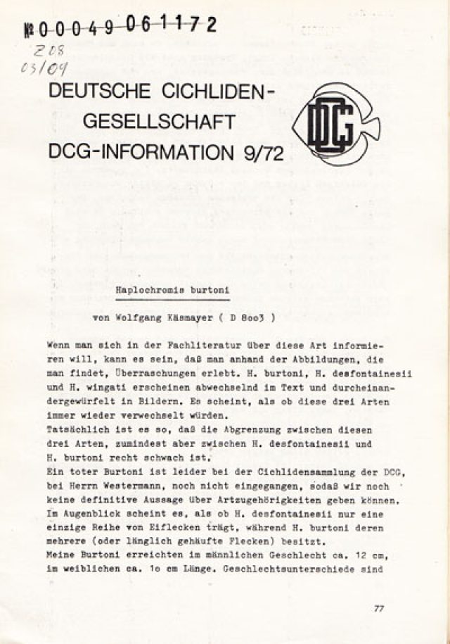 Mitteilungen Cichliden- und Zubehörbörse