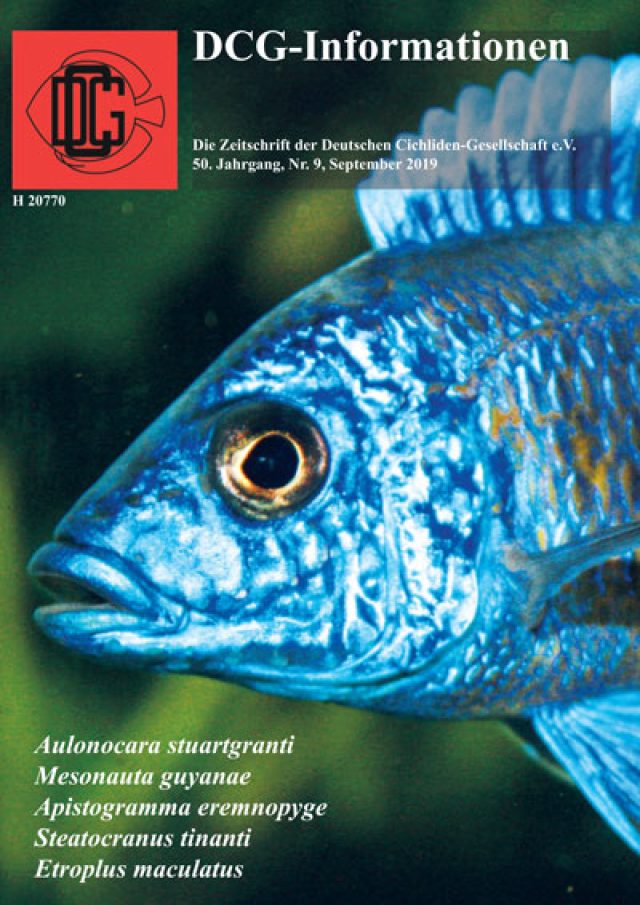 Im Artikel „Ein Wiedersehen mit dem Indischen Zwergbuntbarsch, Etroplus maculatus (Bloch, 1795)“ von Matthias Hoyme, veröffentlicht in den DCG-Informationen 9/2019, hätte die vorgestellte Art korrekterweise Pseudetroplus maculatus heißen müssen. Nachzulesen in Schraml, E. (2014): „Etroplus maculatus wurde in seine alte Gattung gestellt“. DcG-Informationen, 45 (10): S. 234236. Wir bitten den Fehler zu entschuldigen! Die Redaktion - Werner, Uwe:
