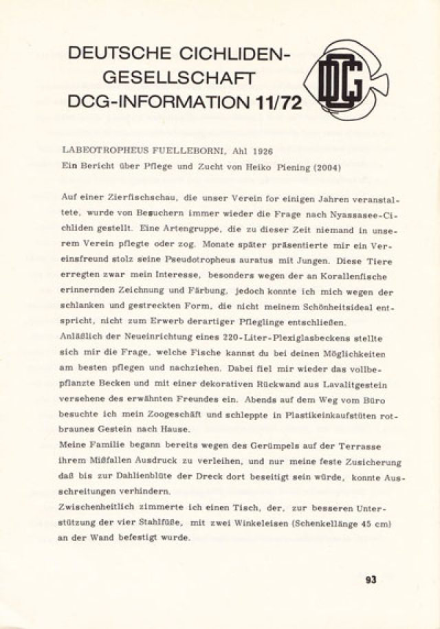 Pflege und Zucht von Labeotropheus fuellborni AHL 1992